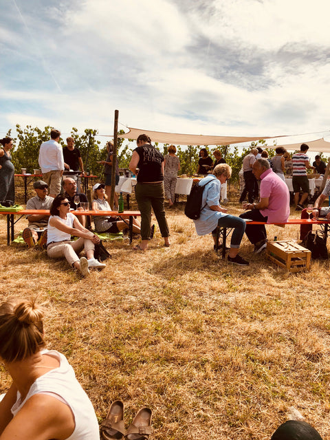 Am Hoffest wandern alle zusammen zum Sektfrühstück in den Weinberg.
